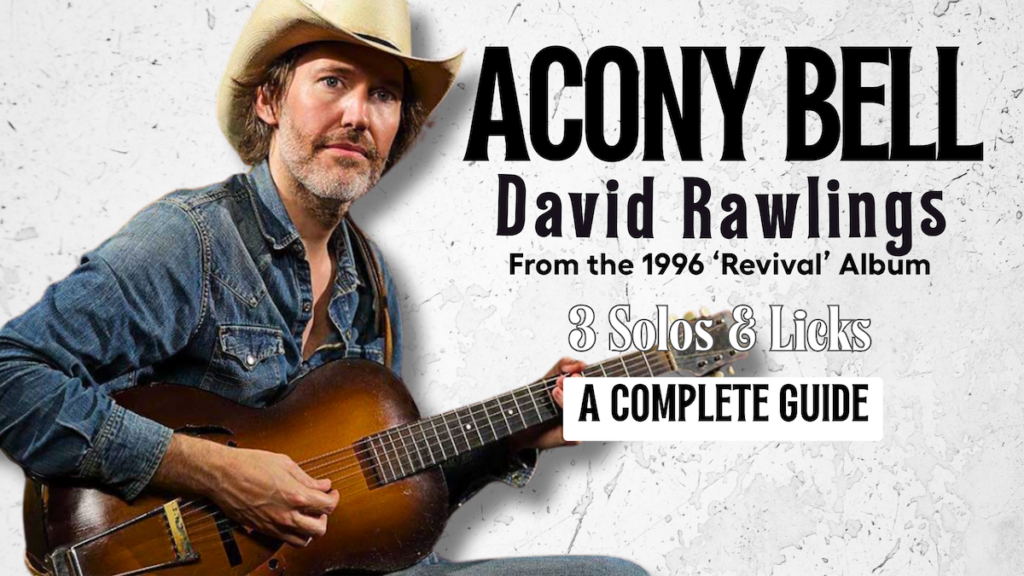 Ryan Kimm6 videosAdded February 20, 2026This lesson is all about David Rawlings’ guitar work on the tune ‘Acony Bell’ from the 1996 album “Revival.” This lesson includes all three of his solos. We are capoed up on the 7th fret working out of C position, which sounds the key of G. Go ahead and give it a listen below!